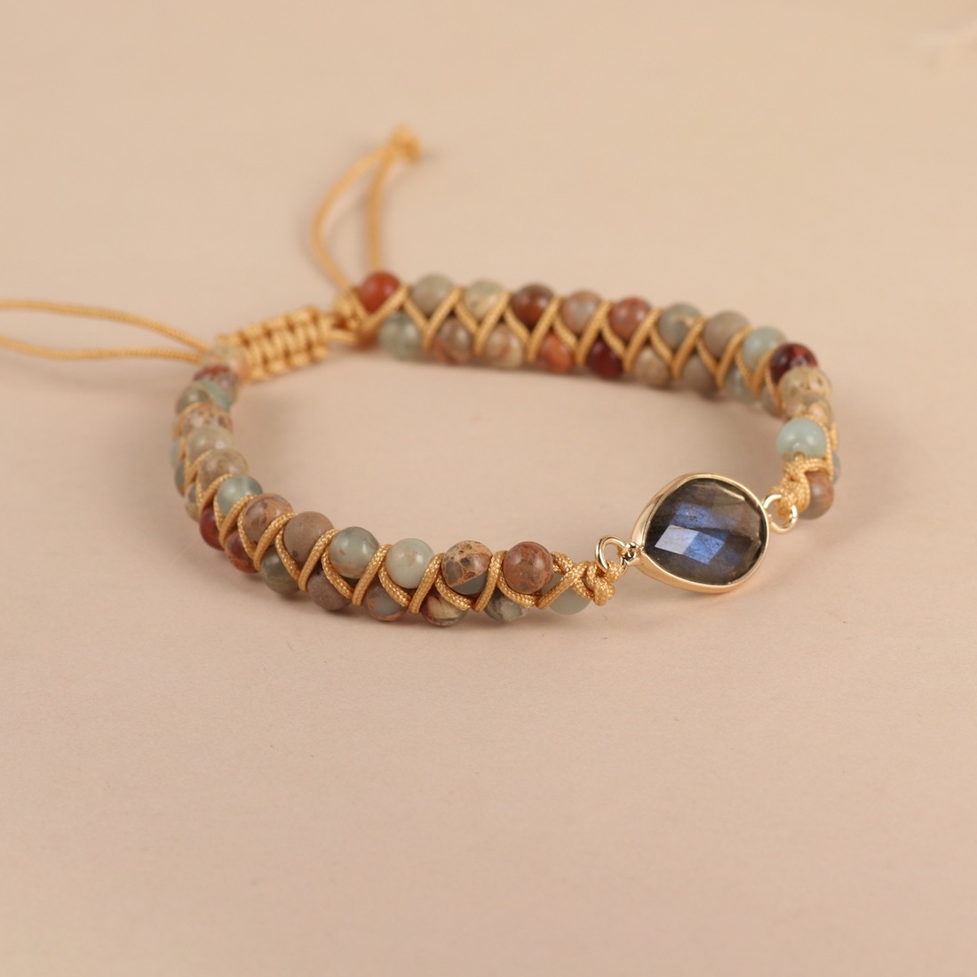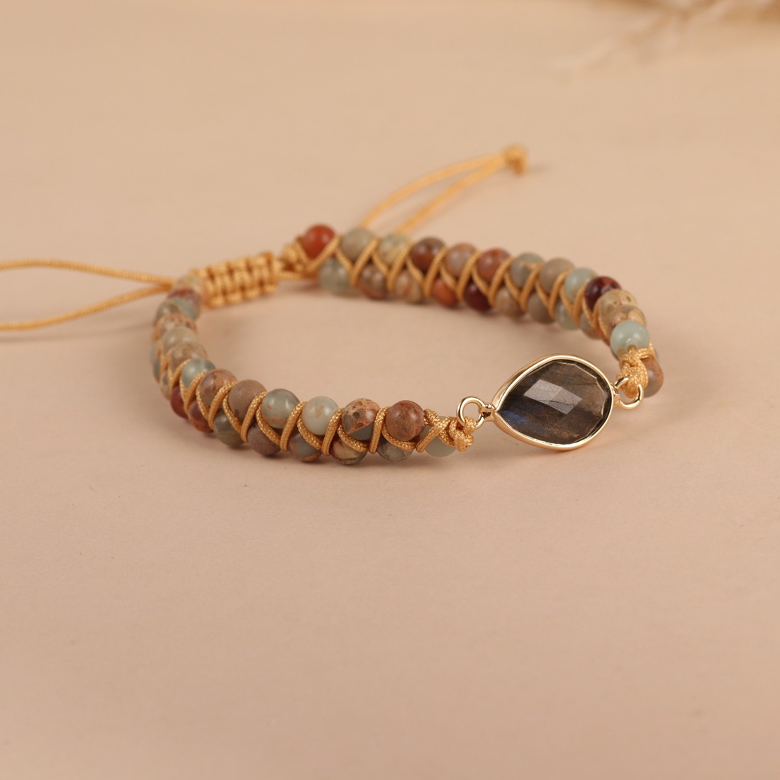Elongated Stone Droplet Shaped Pendant Shoushan Stone Round Bead Double-layer String Woven Bracelet