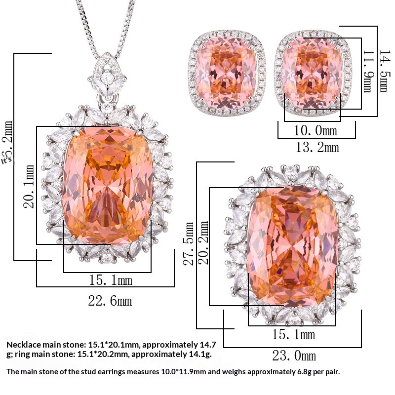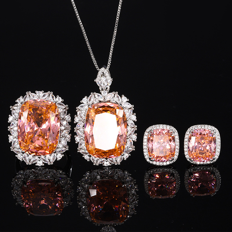 Colors: Bird's Nest Cut Padparadsha Pendant with Chain, Bird's Nest Cut Padparadsha Ring, Bird's Nest Cut Padparadsha Earrings