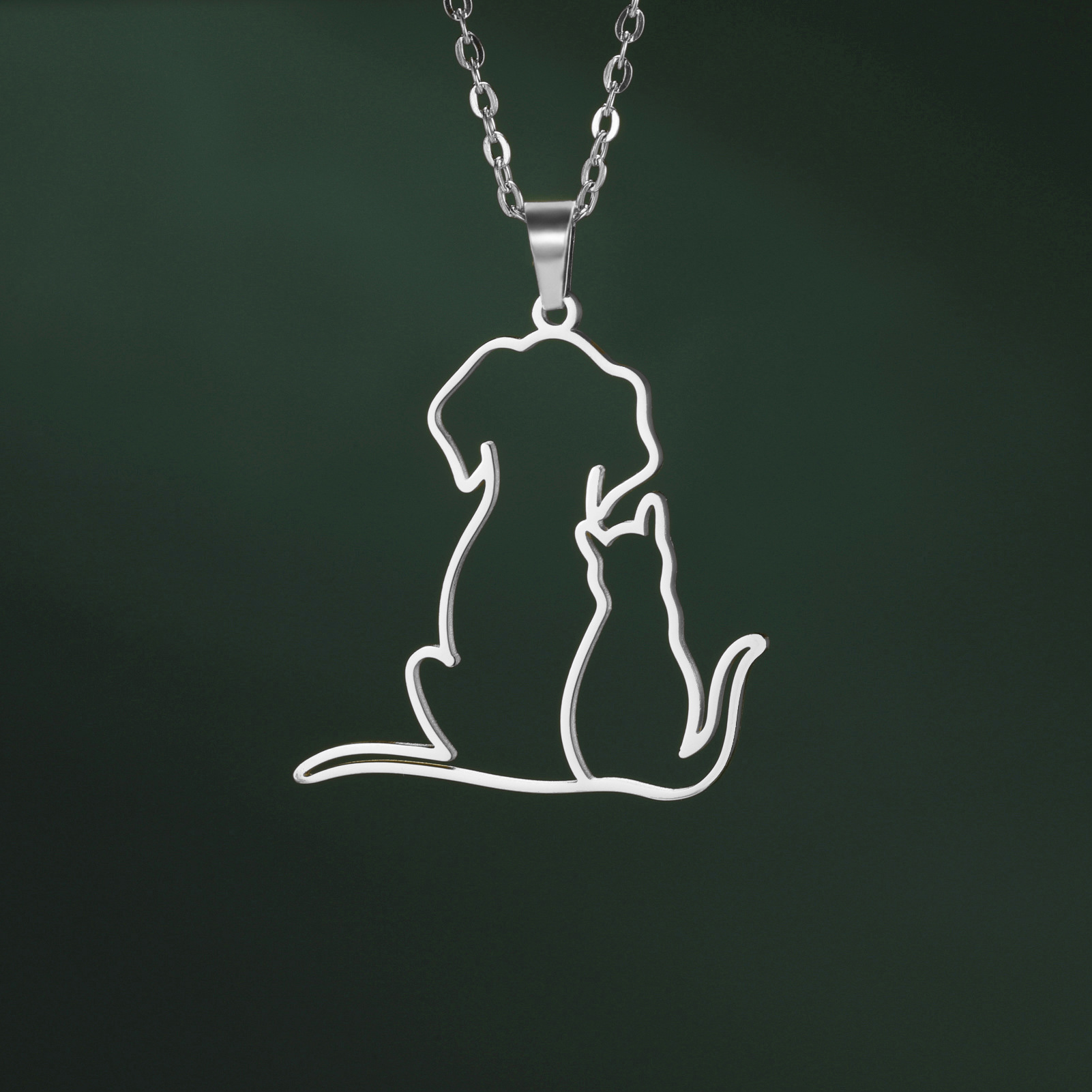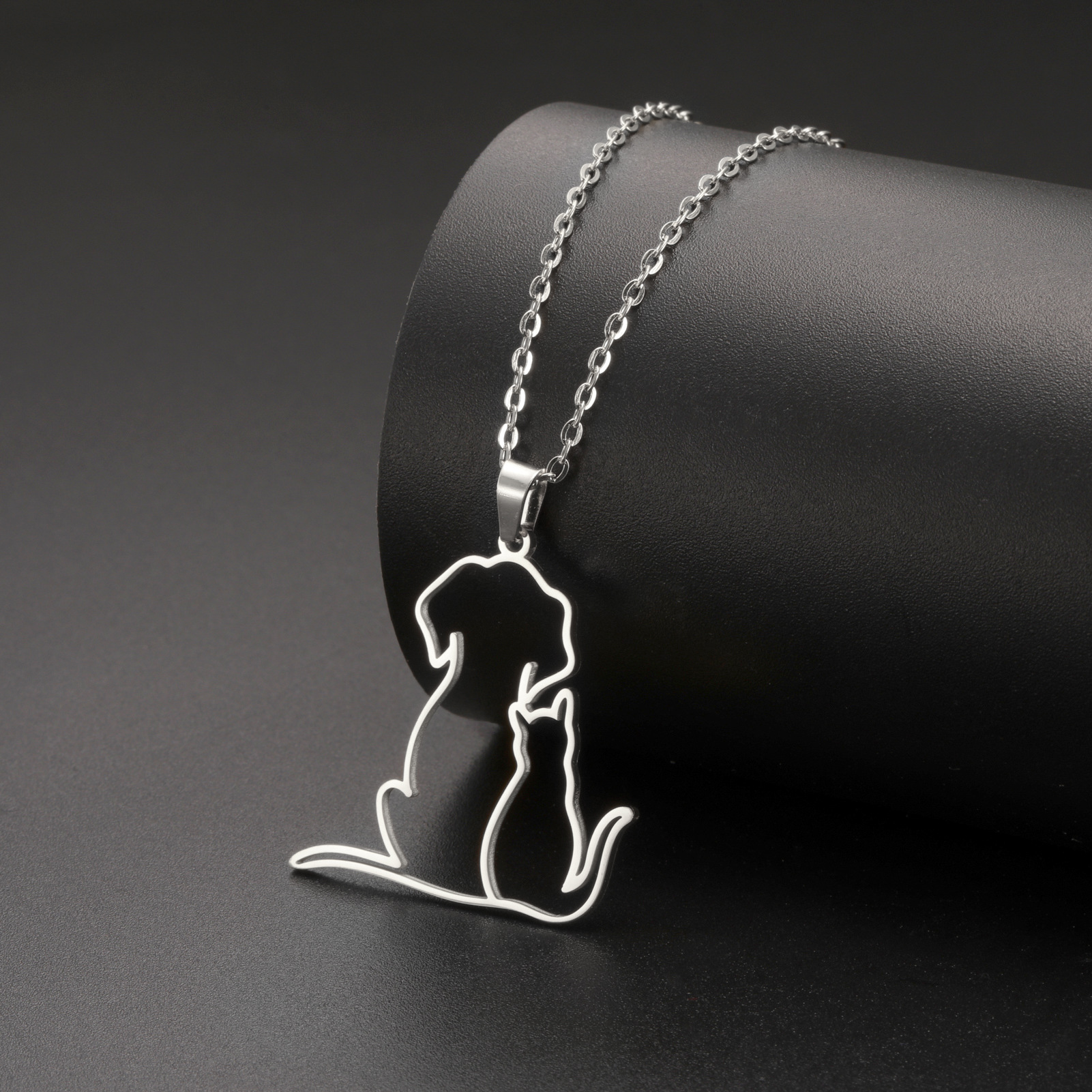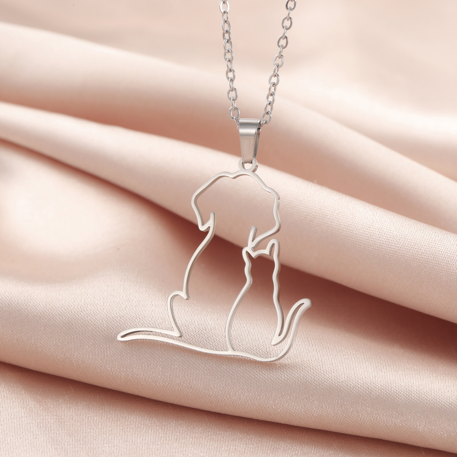 Womens Cute Jewelry Cat And Dog Pendant Stainless Steel Necklace